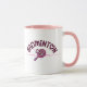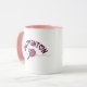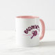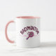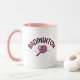 Badminton mom mug for the most supportive mother on the court. This cute badminton gift features "Badminton" written in a girly cursive font with sweet heart accents, while the "MOM" graphic uses a stylish badminton racket and birdie to replace the letter O. The perfect sports mom coffee mug for early morning tournaments, team practices, or enjoying a drink at home. Give a unique badminton mama gift that celebrates her love for the game and her player. High-contrast pink handle and interior make this badminton heart mug a chic addition to any kitchen.