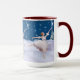 A bailarina pequena em seu traje branco da rainha da neve dança entre os flocos de neve quando uma estrela brilhar para baixo do céu azul profundo nesta caneca que seria grande para o Natal ou em qualquer altura que.