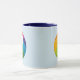 Tenho orgulho de vos mostrar esta linda caneca de uma bola de praia multicolor. É um arco de cores: vermelho, laranja, amarelo, limão, verde, azul, violeta e roxo.