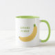 Uma caneca com uma banana e um texto verde personalizável "Banana Power" para amantes desta fruta amarela. Pode ser usado em casa, na escola ou no trabalho. Você também pode mudar o texto e fazer um presente especial para um amigo!