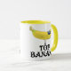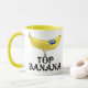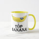 design de "Top Banana". Um homenzinho segura uma banana gigante nas palavras "Top Banana". Aparentemente, o termo vem da gíria teatral, a banana de cima era a comediante no topo da conta, ao contrário da segunda banana que estava na segunda conta. Parece ser uma expressão popular hoje em dia, sempre me faz rir. :)