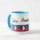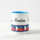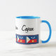 Mostre seu orgulho de Cajun com esta caneca que caracteriza uma listra azul com uma beira vermelha enchida com a bandeira de Acadiana. A caneca lê Cadien Cajun acádico. Mantenha este texto ou personalize-o com sua própria mensagem. O clique personaliza-a para mudar a colocação da pia batismal e do texto.