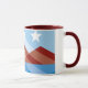 Mug com design com a bandeira de Peoria, Arizona. Uma bandeira azul, marrom e branca com picos de montanha e três estrelas