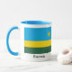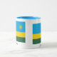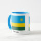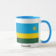 A bandeira de Rwanda foi adotada o 25 de outubro de 2001. A bandeira tem quatro cores: azul, verde, e dois formulários do amarelo (amarelo padrão para a banda média e o que as chamadas de sistema de Pantone "expor ao sol o amarelo" para o sol). A banda azul representa a felicidade e a paz, a banda amarela simboliza o desenvolvimento econômico, e a banda verde simboliza a esperança da prosperidade. O sol representa a iluminação. [2] A bandeira nova representa a unidade nacional, o respeito para o trabalho, o heroísmo, e a confiança no futuro. Foi adotada para evitar conotações ao genocídio 1994.