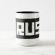 Configuração do banner RUST: Preto no símbolo vermelho, RUST branco em um fundo retângulo preto.