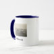 Velhos amigos visitando (reprodução de foto antiga real) branco com caneca de café azul-marinho. Aproveite esta cena única de barco da vida no início da década de 1900 em Minnesota no lago Minnewaska, EUA enquanto bebe seu café. Este tesouro incomum é um estúdio de Ken-Ray clássico que você não encontrará em nenhum outro lugar.