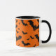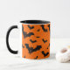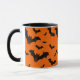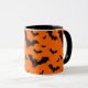Uma design divertida e assustadora, com morcegos pretos do estilo cartoon com olhos vermelhos brilhantes voando sobre um fundo laranja ousado, fazer perfeito para decoração temática de Halloween ou suprimentos de festas. É brincalhão, um pouco assustador, e cheio do espírito do Dia das Bruxas!