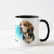 Um retrato de aquarela de um lindo Cachorro de Cachorro de Feijão de Beagle é a característica em dois lados desta caneca. Cada imagem é colocada sobre um fundo azul brilhante de filtro. Entre as duas imagens está o texto que descreve esse companheiro leal e amoroso, com "o cão BEAGLE" em preto no fundo. Todo o texto é facilmente personalizado para qualquer coisa que você preferiria para que você possa descrever seu próprio amigo leal.