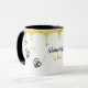 Uma caneca branca com fundo branco decorada com mel gotejante de ouro. Uma abelha preta adorável com um roteiro de estilo com letra ouro. Personalize e adicione seu texto.