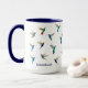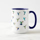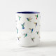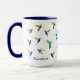 Caneca personalizada única para amantes de beija-flores, apresentando várias espécies de beija-flores, como o beija-flor-de-bico-largo, o beija-flor-garganta-de-fogo, o beija-flor Safira-de-cauda-dourada e beija-flores Safira-de-barriga-azul, beija-flores-de-orelha-violácea, beija-flores Coronet e Estrela-cintilante. Imagens tiradas de pinturas originais em aquarela de Christiane Dobbins.