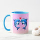 Dois golfinhos azuis virados com um coração vermelho entre eles em um fundo cor-de-rosa borbulhante—uma caneca de cerâmica giratória para casais e amantes do oceano. Mande um pedaço de doçura com cada gole. Dois golfinhos azuis brincalhões encontram nariz-a-nariz debaixo de um coração vermelho brilhante, colocados contra um pano de fundo rosa e bolha. É alegre, romântico e fresco do oceano — perfeito para encontros matinais de café, escrivaninhas, aniversários, Dia do Namorados, ou para dar aos golfinhos fãs de todas as idades.