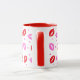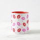Beijos e corações cor-de-rosa e vermelhos, padrão de confete, canecas/xícaras de cerâmica com alça vermelha e área de dentro! Selecione o seu estilo de caneca favorito também nesta página! Este design bonitinho também está disponível no nosso compra sobre muitos outros pontos. Veja nosso beijo confetti com fundo preto em itens também!