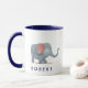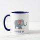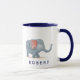 Mug personalizado apresentando um elefante adorável e bonito com orelhas engraçadas de fundo branco, a rosa. design bonito e divertido para crianças e crianças que amam leões elefantes, tigres e todos os animais. Presente monograma personalizado. Personalize-o adicionando seu nome ou texto personalizado - Use o botão Personalizar ou o botão editar. Nome personalizável e cor do plano de fundo