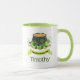 Esta caneca de café apresenta uma pote de ouro, com uma faixa exclamando "Feliz Dia do Santo-Paddy" com seu nome escrito em verde abaixo. O dentro e a alça estão no verde limão. Escolha entre uma variedade de canecas de café. Personalize o seu hoje! Trabalho de arte criado por: AMBilustrações http://www.etsy.com/shop/AMBillustrations/