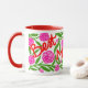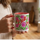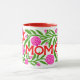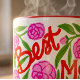 This is a vibrant and floral "Best Mom Ever" Mother's Day Mug features a wrap-around design with a bold, hand-painted writing, leaves and flowers. This mug is covered in a lush pattern of bright carnations and green foliage with a adorable Mothers Day Message.