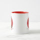 Caneca de Natal com uma ilustração de uma menina ou rapaz preto feliz sorridente e sorridente, o bebê está vestindo roupas vermelhas e brancas e segurando um presente; com modelo de texto editável para seu nome ou mensagem, design de Natal