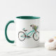 Caneca Bicycle With Bird and Flower Basket Turquoise Blue