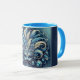 An opulent blue masquerade mask unfolds in a swirl of sweeping feathers, luminous pearls, and ornate jewel details, creating a captivating Venetian fantasy scene. Deep navy, sapphire, teal, and soft ivory blend in a rich, moody color story that feels both elegant and enchanting. Intricate filigree patterns, cascading teardrop gems, and graceful feather plumes create movement and drama against a midnight backdrop dusted with delicate light accents. The overall aesthetic is romantic, baroque-inspired, and whimsically theatrical, evoking grand ballroom evenings and timeless mystery. A statement piece full of depth, shimmer, and artistic flourish. AI generated artwork.