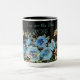 Esta linda caneca de Rosas Azuis e Flores, a melhor caneca da mamãe em um fundo preto com tons de rosa e verde seria um presente de excelente para sua mãe ou avó. Esta linda caneca com flores azuis cuidadosamente trabalhadas, pássaro amarelo giro, e um mamangabo e prado farão sua mãe sorrir. Você pode personalizá-lo atualizando a saudação. Você pode personalizá-lo ainda mais e ajustar o tamanho da fonte. Feliz Dia de as mães!
