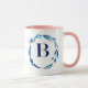 Folhas florais de cor aquosa azul com letra B no centro. Personalizável com seu nome, data especial ou outras palavras de sua escolha, ou apenas deixe vazio.