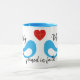 Caneca Blue Love Birds Heart with Cross and Names Wedding