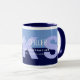 Design azul moderno de dois tons para uma caneca de café personalizada com nome e profissão (administração de negócios)... tudo editável