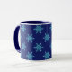 This pretty mug features my original artwork of vintage illustrated snowflakes in blue. It has a blue color inside it and on the handle. These are 11-ounce mugs, just the perfect size for your home brewed coffee or tea - or even hot chocolate! It would make a great gift, and you can put packets of coffee, tea bags or hot chocolate inside. One other gift idea is putting a little plant in it to make it extra special for your loved one. A fun gift for a winter lover, skier or a Christmas Holiday gift for anyone.