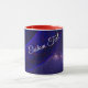 Personalize this blue space donuts geometric coffee mug. Give as a gift or add to your kitchen hardware. Additional mug colors are available.