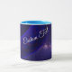 Personalize this blue space donuts geometric coffee mug. Give as a gift or add to your kitchen hardware. Additional mug colors are available.