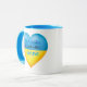 Mostre o vosso apoio à Ucrânia com esta caneca inspiradora. A design apresenta um coração nas tradicionais cores azul e amarela da Ucrânia e texto inspiracional, "Eu sou Aussie Eu estou com a Ucrânia". Personalize-o adicionando a sua própria nacionalidade.