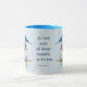 Bonito xícara de café azul de pássaro com passagem bíblia - Eclesiastes 3:11 "Ele fez todas as coisas lindas no seu tempo". Há um relógio de cozinha correspondente.