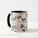 Desenhada à mão a tinta preta, esta elegante caneca gótica do Dia das Bruxas apresenta um lindo padrão de crânios, rosas e teias de aranha em creme e tons esbranquiçados, todos sobre um elegante fundo rosa-pincel.