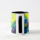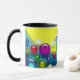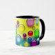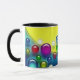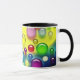 Esta caneca tem bolhas coloridas nela.