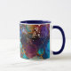 Artsy e uma caneca maravilhosamente única apresenta um padrão de bolhas de álcool e tinta contra um fundo de cor de cobre, com uma alça azul marinho e dentro. Muitas outras cores para escolher.