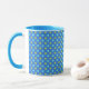 Uma caneca de ressonância com um padrão de luas azuis Bolinhas em Turquesa, Verde Neon e Azul Azuis. Parte da coleção 'Luas Azuis' de Posh & Painterly.