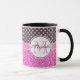 Bolinhas rosa brilhante e cor-de-rosa nas cinzas com caneca com um nome e uma caneca.