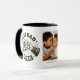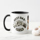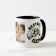 Caneca de Café Moderna Melhor Pai de Todos os Tempos. O design apresenta uma ilustração moderna de um pai e filho fazendo bomba de punho, uma fotografia de sua escolha e os nomes das crianças. Presente perfeito para o Dia dos Pais, Aniversários ou Natal.
