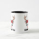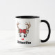 Uma caneca de Natal bonita mostra uma imagem de uma face vermelha de rena ruidosa. Personalize esta caneca festiva com um nome ou outro texto personalizado. presente festivo de excelente para a família e os amigos.