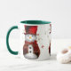 Uma caneca de café de Natal (ou uma caneca para aquela ganga!) com um adorável bonitinho vestido em colete de veludo vermelho e chapéu de topo para adicionar um toque festivo e caprichoso ao seu entretenimento de Natal nesta época de férias.