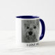 Esta caneca bonita de Westie (cão ocidental de Terrier das montanhas) tem uma imagem adoreable de um cão molhado do westie em um lado com o fraseio "EU TE AMO…" apenas abaixo da imagem. Esta caneca particular mostra uma caneca branca com um punho azul e uma borda azul, porém você pode escolher outras cores ou uma caneca lisa se você desejar. Este é um presente ou um presente bonito para aquele especial alguém.