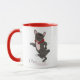 Caneca bonito e engraçada do buldogue francês que caracteriza um Frenchie de dança feliz. Fácil personalizar com seu nome.