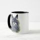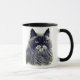 Café assoprando preto, enquanto e retrato de cinza de um lindo gato persa