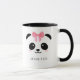 Cara de panda bonita, caneca personalizada. Bonito rosto de kawaii panda chubby com bochechas cor-de-rosa vestindo uma fita rosa. Adicione facilmente seu nome para personalizar a caneca. Você pode mudar a cor da caneca. Um belo presente para uma garota, uma filha, namorada de aniversário ou outra ocasião especial.