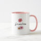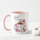 Bom dia com uma xícara de café Kawaii, cubos de açúcar e flores rosa. Um doce piscar os olhos para começar seu dia. Essa caneca de café diz, "vovó" mas você pode personalizar isso para dizer qualquer nome ou membro da família na área de personalização.