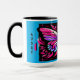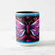 "Borboleta Brilhante" Café Personalizável/Tea Mug. Adicione uma pop de cor e capricho ao seu espaço com o nosso travesseiro de borboleta azul e rosa com um design de borboleta ao estilo da tatuagem vibrante em rosa quente, lavanda e preto sobre um fundo turquesa, fazer uma adição versátil e atraente à sua decoração doméstica.