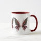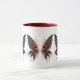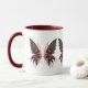 Caneca de café. Borboleta lenhosa com flores.