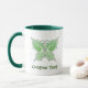 Ícone de borboleta composto por folhas verdes de menta. Cor de fundo personalizada. Texto personalizado de ambos os lados.