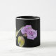 Borboleta Monarch e Rosa roxa sobre fundo preto.