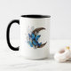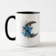 Borboletas morfosas azuis com asas detalhadas sentam-se sobre a crista de madeira decorada com plantas selvagens sobre fundo branco. Borboletas azuis morfo.