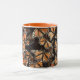 Esta design apresenta uma foto de um grande grupo de borboletas Monarca.